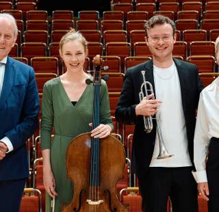 Bild oben (v.l.n.r): Gruppenfoto mit Louwrens Langevoort, Valerie Fritz, Simon Höfele und Ewa Bogusz-Moore